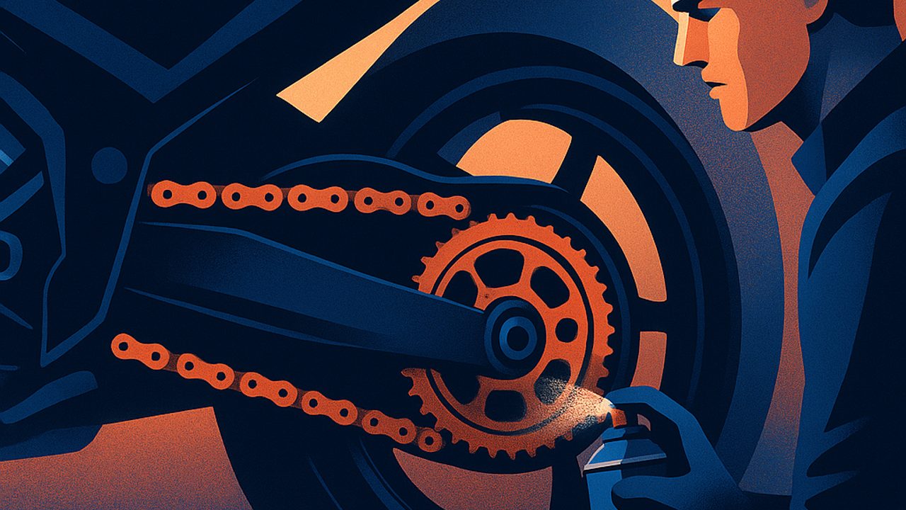 Lubrificar não é “ensopar” a corrente. O objetivo é criar uma película protetora.